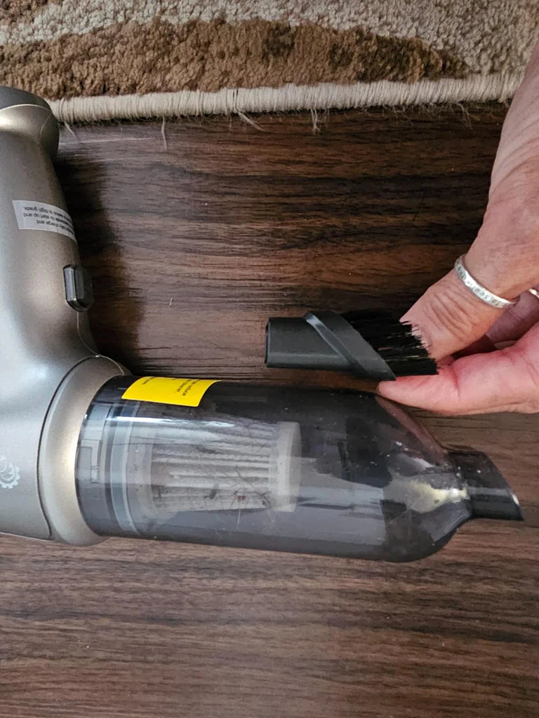 I wasn't sure if the attachments would stay securely in place or if they would slip while vacuuming. But they fit really well and are still easy to change. The brush nozzle is especially great for delicate surfaces. I just wish there was a small click mechanism to attach them even more securely, but so far everything is holding perfectly!