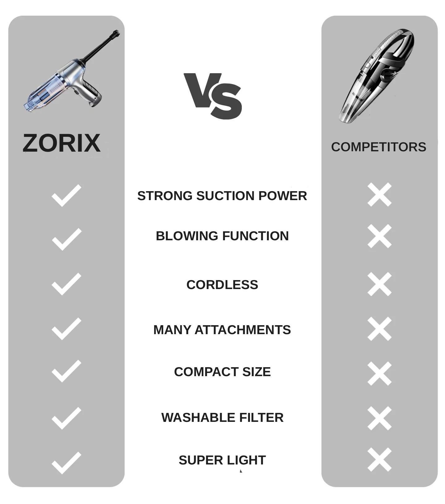 Device:1 x Zorix - Cordless Car Vacuum Cleaner
